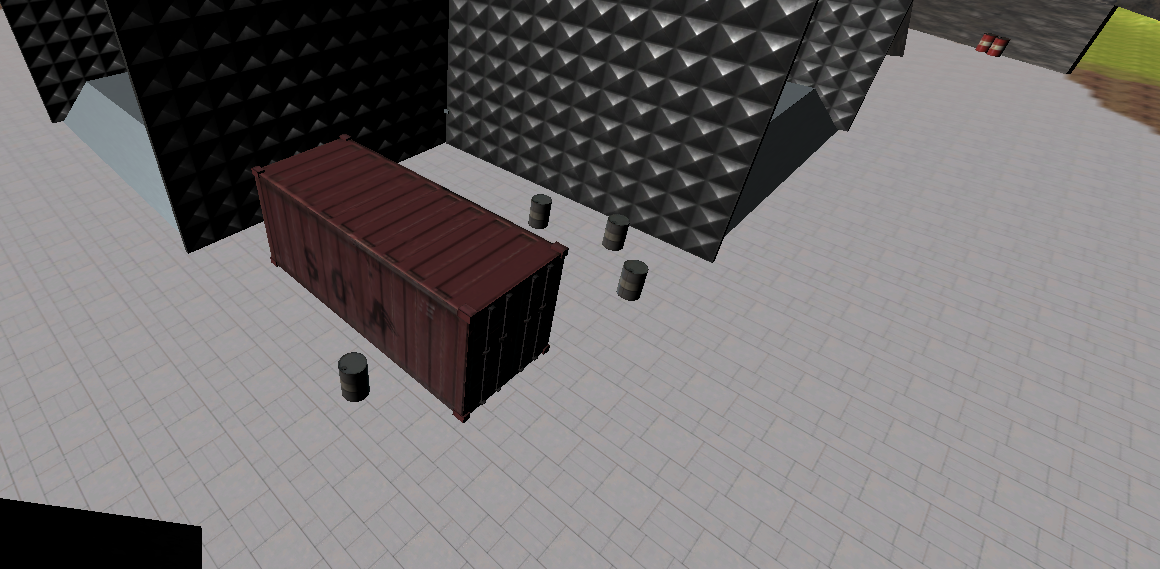 In the four corners between the paths leading to inner section, various props were placed to populate the inside of the base. These props double as additions to the scenery and objects that can be used as cover while fighting inside the base.