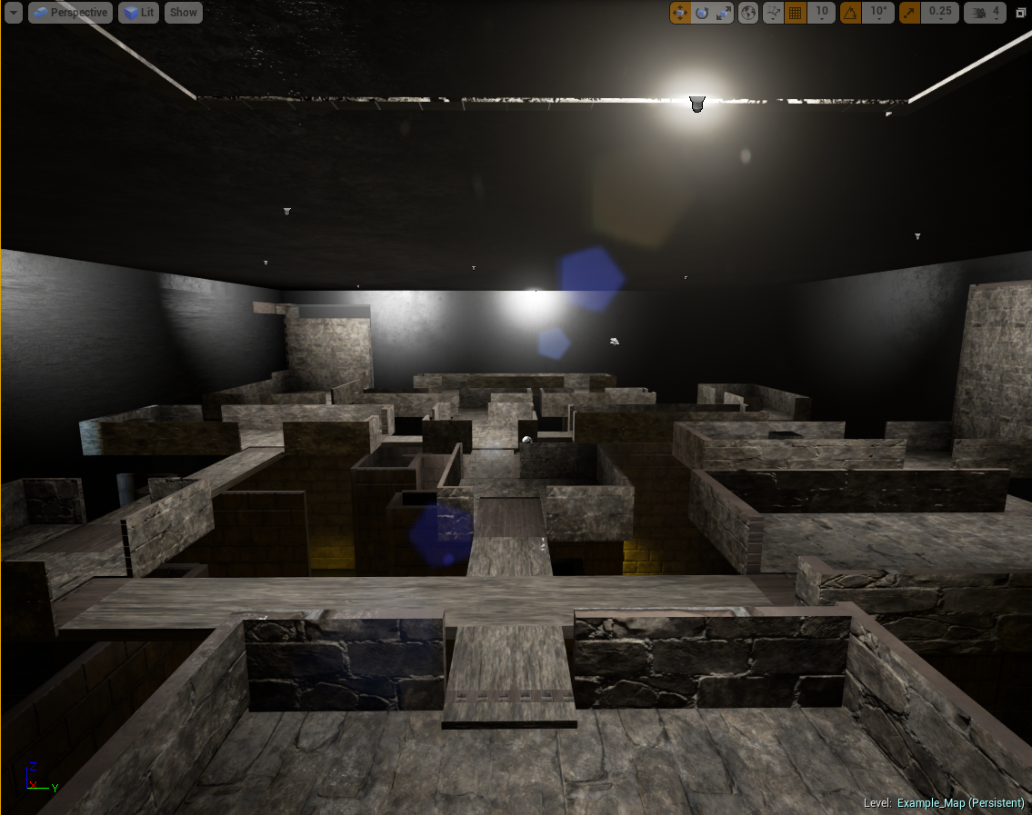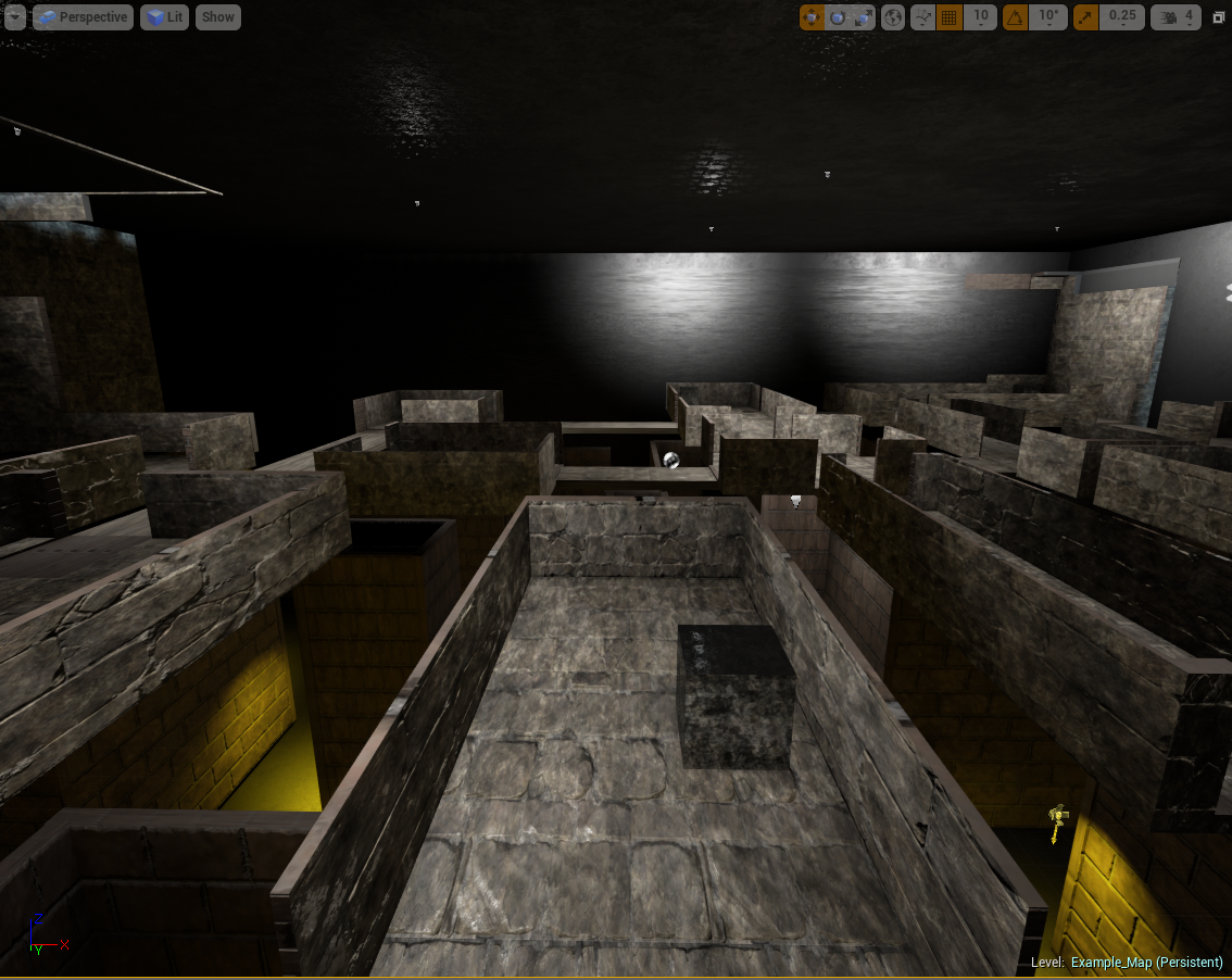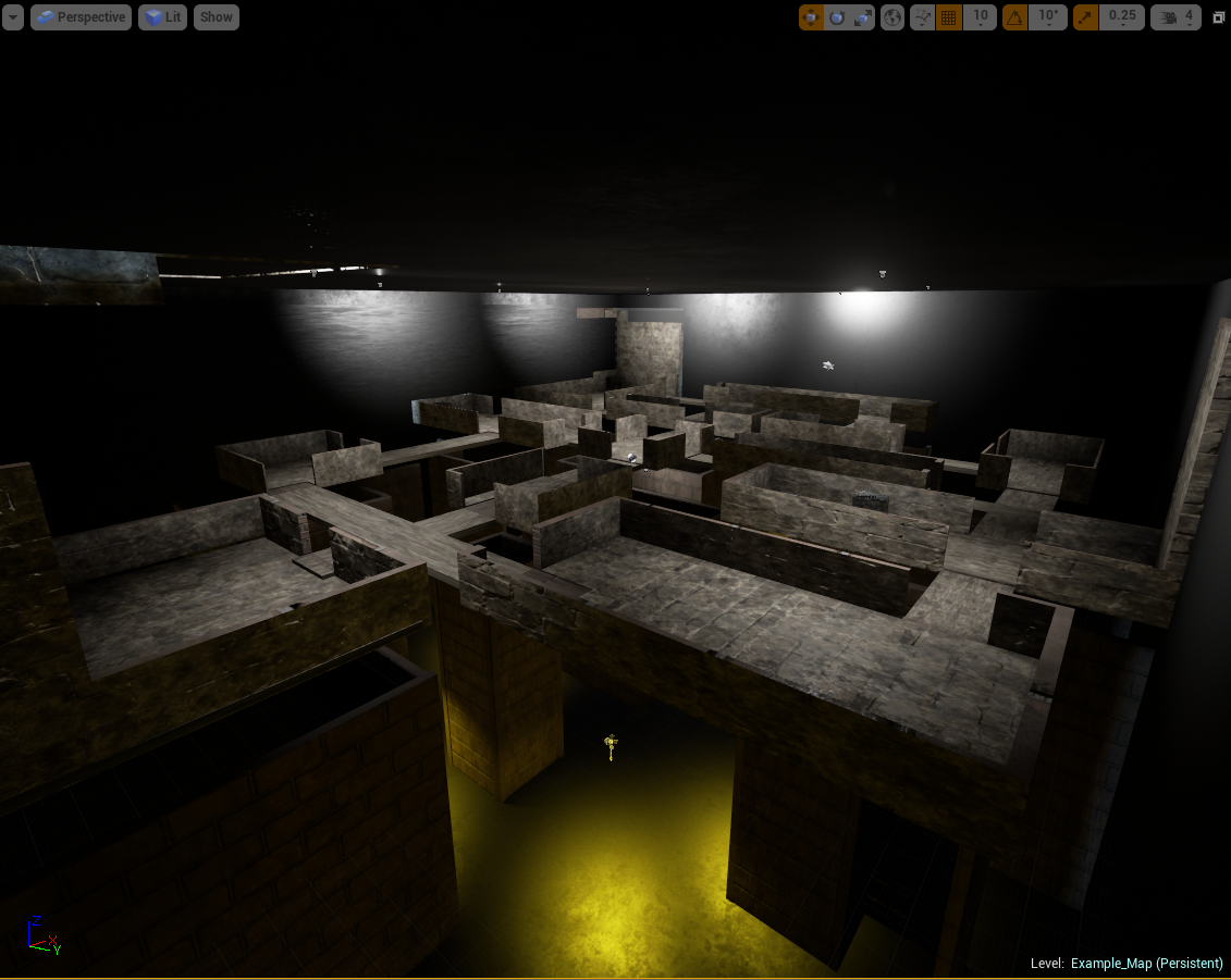 Here is a shot of the boxed out level in Unreal. The difference in lighting between floors can be seen from here.