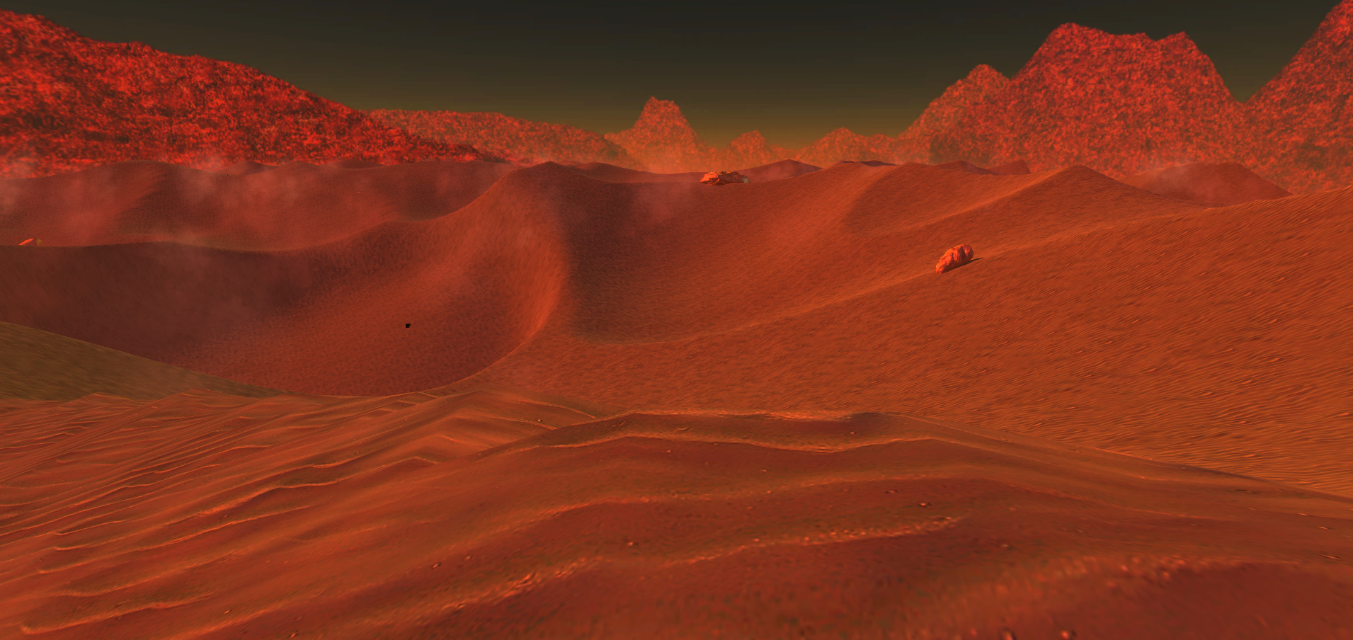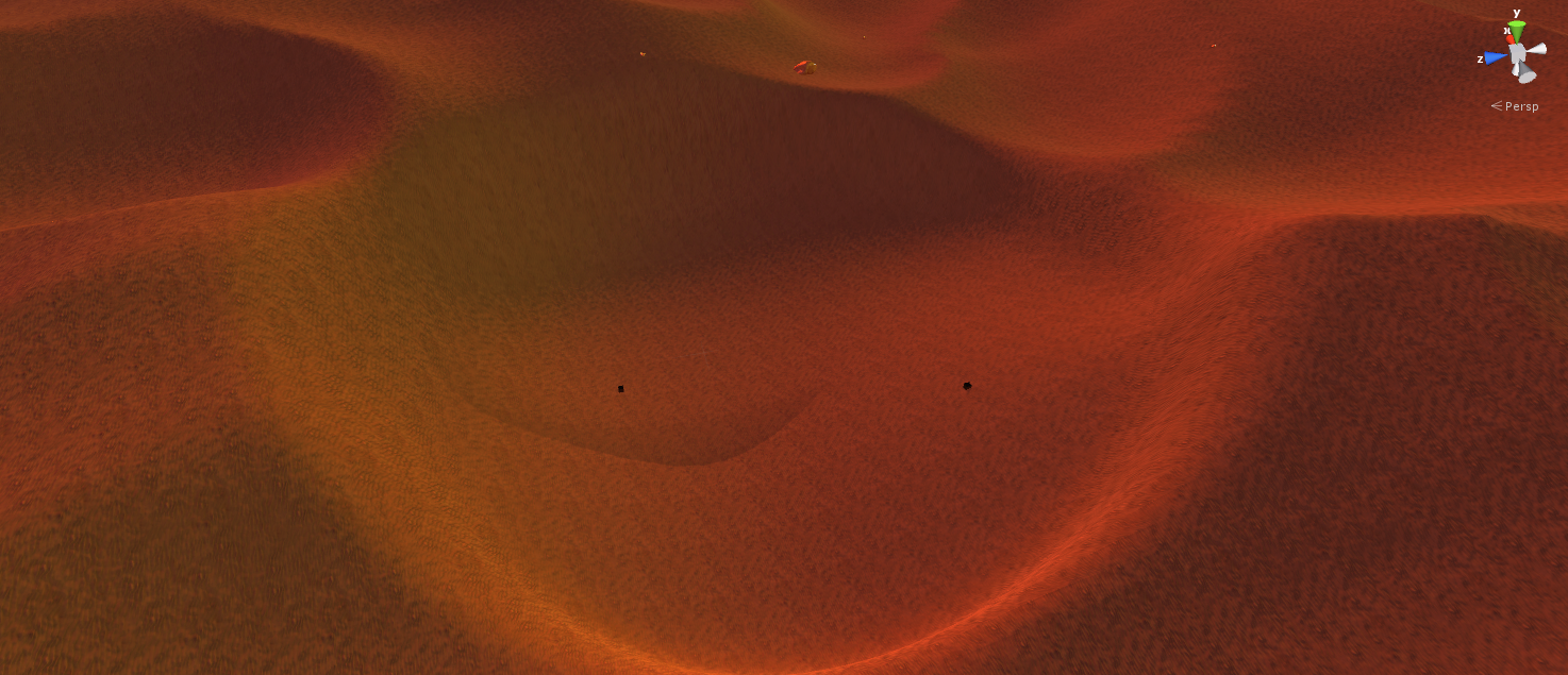 Since this environment is supposed to be a desert, I wanted to include a sort of sandstorm effect as the player travels across the area. Unity provides a DustStorm particle system by default that I modified until it gave off the look I was hoping for. I initially tried to implement a sort of fog across the level, but I decided that this effect was a better bit for the environment.